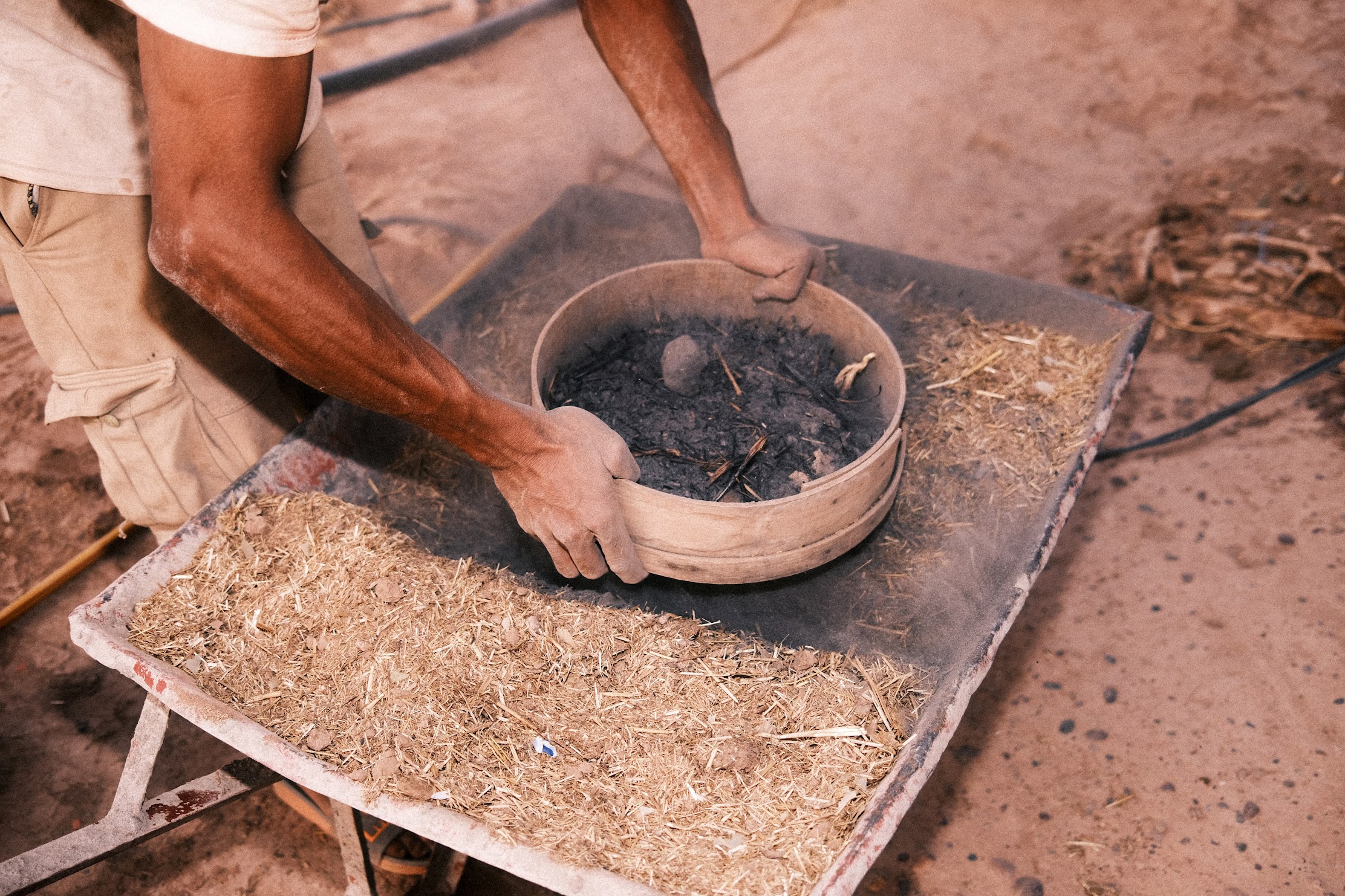 Making a fertiliser from donkey poo, ash, coffee, eggshells and hay, 2023